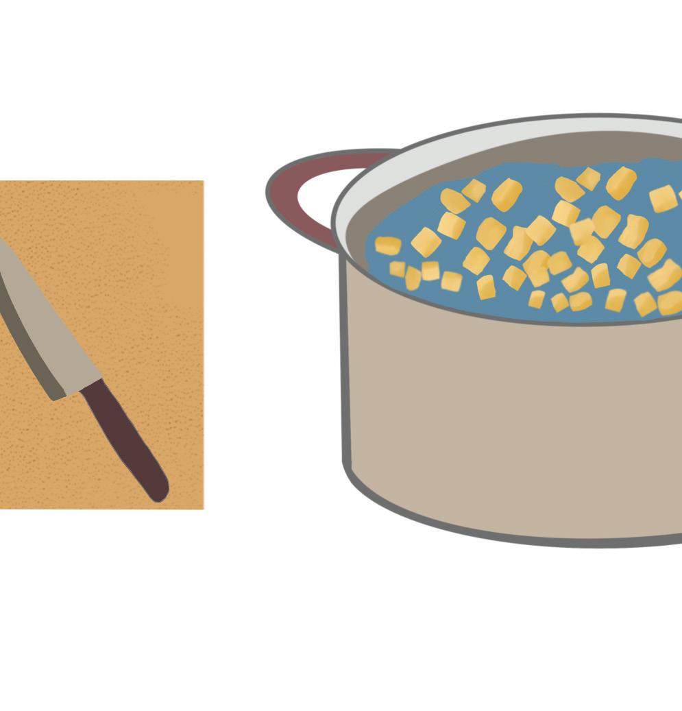 Peel and chop 500g of potatoes into small cubes. Then, place the potatoes in a pot and cover them with water.Bring the water to a boil over medium-high heat.