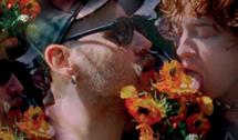 Fazendo pegação entre lápides gravadas com referências à cultura e sexualidade queer, pessoas queer desafiam a morte devorando flores cobertas de doces.