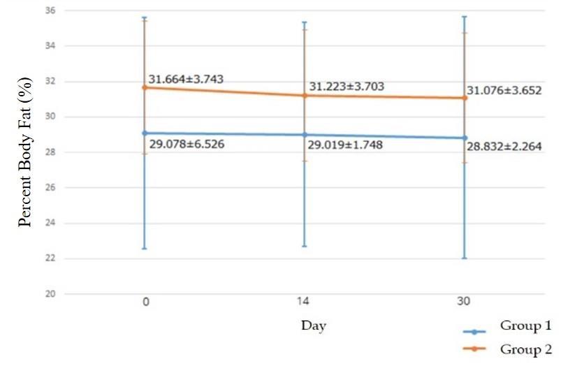 Figure 4 Graph showed the average BMI of participants measured on day 1, 7, 14, 21 and 30