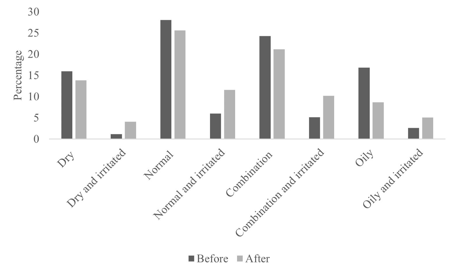 Figure 2 Comparison of the percentage of each individual's skin type before and after using the website