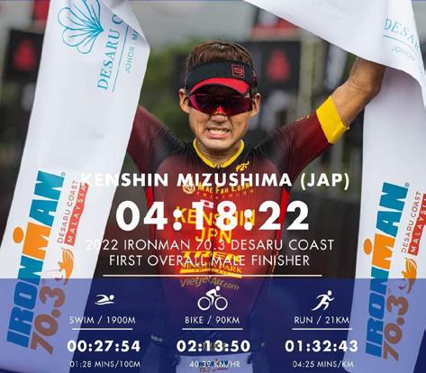 Mr. Kenshin Mizushima showed the outstanding performance by finishing all three challenges in four hours, 18 minutes and 23 seconds (1.9km swim, 90km bike, 21.1km run).