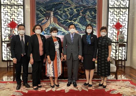 On 18 May 2022, Assoc.Prof.Dr. Chayaporn Wattanasiri, President of MFU, Assoc.Prof.Dr. Nantana Gajaseni, Vice President, and Dr.Teeraparp Predeepoch, Acting Dean of the School of Sinology paid a courtesy visit to H.E. Mr. Han Zhiqiang, Ambassador of the People’s Republic of China to Thailand and at the Embassy of the People’s Republic of China in Bangkok. The purposes of this visit were strengthen relations and discuss possibilities to initiate projects to enhance further cooperation with China.
