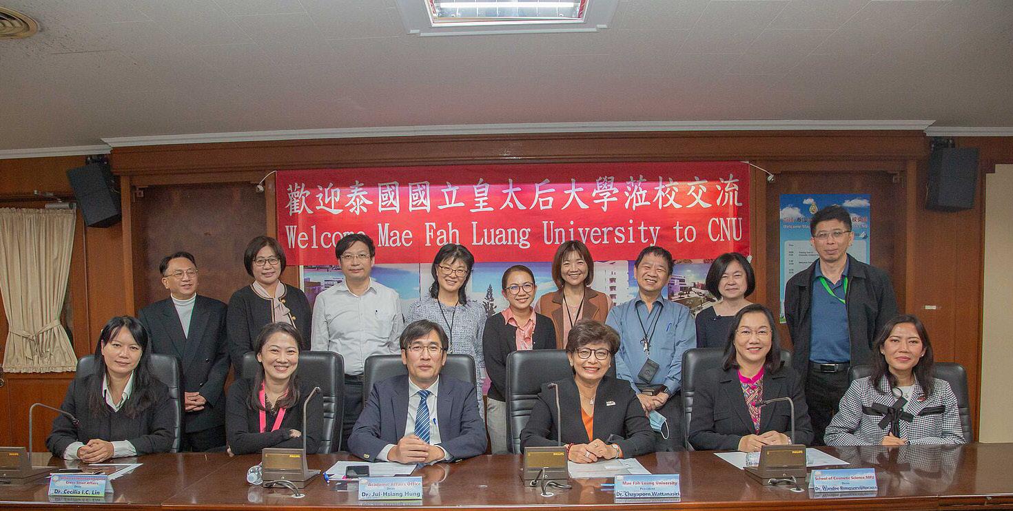 The purpose of the visit was to discuss possible academic collaboration between Mae Fah Luang University (MFU) and Chia Nan University of Pharmacy & Science (CNU) which builds on the strengths in cosmetic science and beauty technology of the Department of Cosmetic Science, CNU and the School of Cosmetic Science, MFU. The future