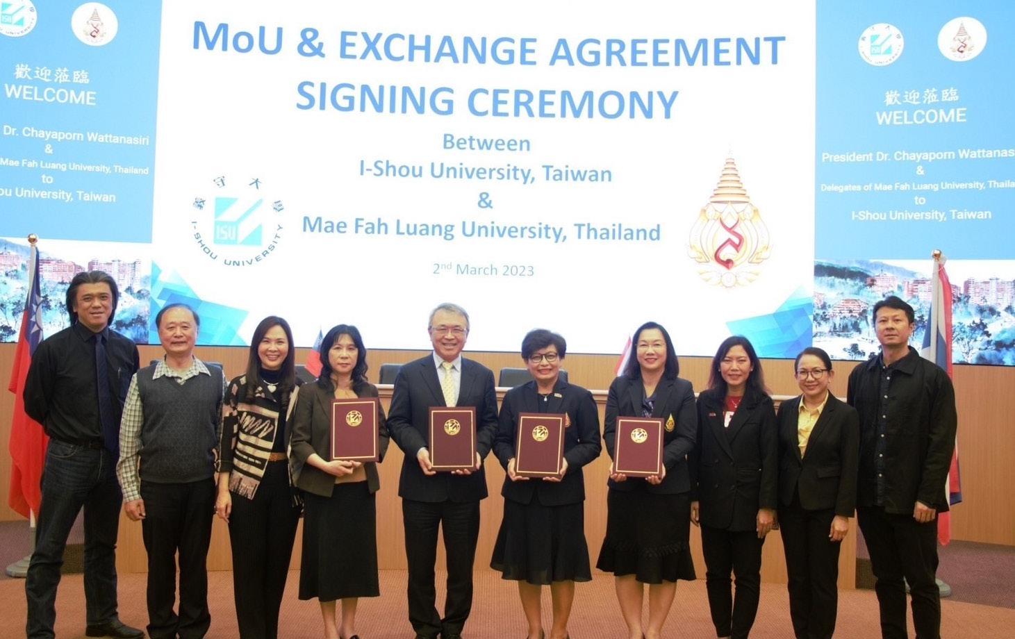 On 2 March 2023, Assoc. Prof. Dr.Chayaporn Wattanasiri, President of Mae Fah Luang University and Prof. Dr.Roger C.Y. Chen, President of I-Shou University, the Republic of China (Taiwan) signed a Memorandum of Understanding (MoU) and an agreement for student exchange between the two universities.