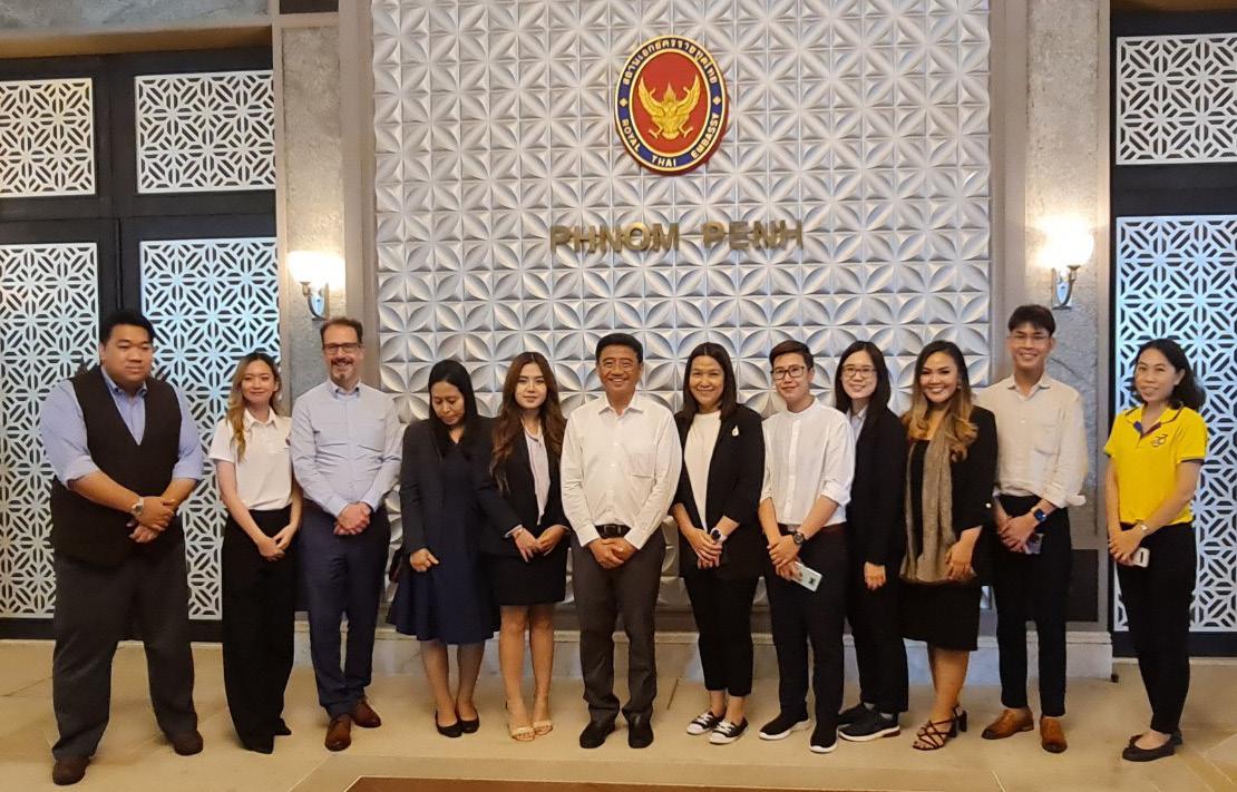 Moreover, MFU representatives visited the Cambodian Higher Educations Association (CHEA) to meet the members of board of directors led by H.E. Mr. Heng Vanda, Chairman of CHEA’s Board of Directors and President of Vanda Institute; and H.E. Dr.Ly Chheng, President of CHEA’s Board of Directors and Director General of BELTEI Group. The meeting provided the opportunity for representatives of Thai universities to learn more about Cambodia and its higher education situation as well as to get to know representatives from private high schools and higher education institutions in Cambodia. The delegates also paid a courtesy visit to H.E. Mr. Cherdkiat Atthakor, Ambassador of Thailand to Cambodia at Royal Thai Embassy, Phnom Penh, Cambodia.