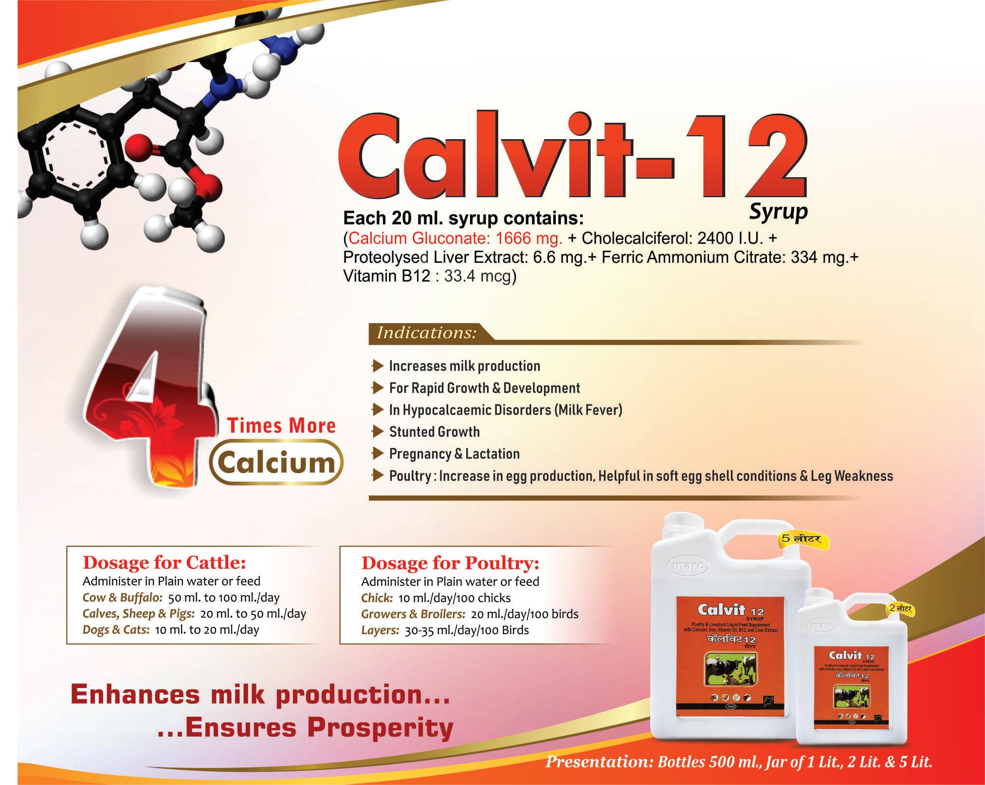 Calvit-12 is especially useful in the diseases like Rickets, weakness of bones, physical weakness, loss of appetite, stunted growth as well as development of embryo.