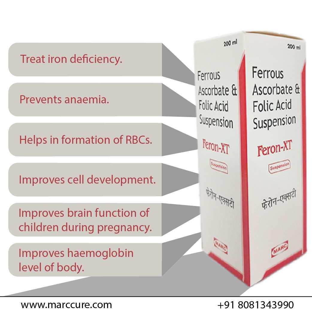 Feron-XT syrup is a combination of elemental iron and folic acid, is a scientific formulation of Ferrous Ascorbate + Folic Acid, which is an aggregate of two dietary supplements: Ferrous Ascorbate and Folic Acid which fill up the body's need for vital nutrients. Folic acid is a structure of vitamin B. It performs a crucial role in the formation of red blood cells, which lift oxygen inside the body. It is additionally useful in pregnancy due to its requirement for the improvement of the unborn baby's brain function and spinal cord. Ferrous Ascorbate acts as a catalyst in a variety of biochemical reactions in our body, helps transport and utilisation of oxygen, and helps in cell growth and proliferation. This improves the fabrication of red blood cells and haemoglobin.