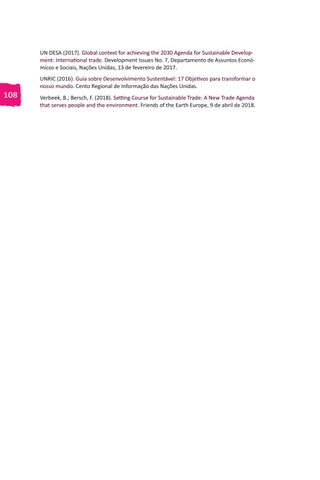 UNRIC (2016). Guia sobre Desenvolvimento Sustentável: 17 Objetivos para transformar o nosso mundo. Cento Regional de Informação das Nações Unidas. Verbeek, B.; Bersch, F. (2018). Setting Course for Sustainable Trade: A New Trade Agenda that serves people and the environment. Friends of the Earth Europe, 9 de abril de 2018.