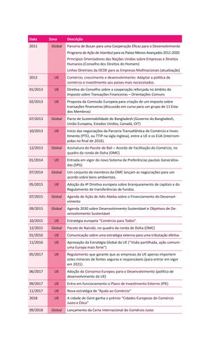 Descrição Parceria de Busan para uma Cooperação Eficaz para o Desenvolvimento Programa de Ação de Istambul para os Países Menos Avançados 2011-2020 Princípios Orientadores das Nações Unidas sobre Empresas e Direitos Humanos (Conselho dos Direitos do Homem) Linhas Diretrizes da OCDE para as Empresas Multinacionais (atualização)