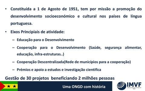 • Constituída a 1 de Agosto de 1951, tem por missão a promoção do desenvolvimento socioeconómico e cultural nos países de língua portuguesa.