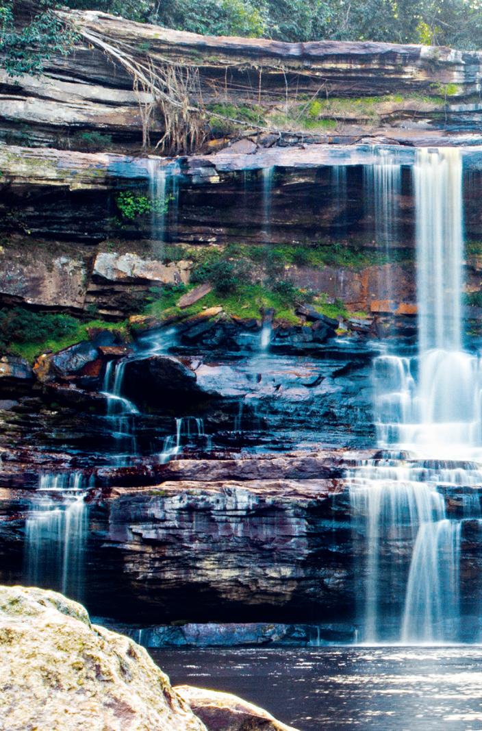 The ‘Lost World’ of Maliau Basin harbours some of Borneo’s most impressive cascades. The seven-tiered Maliau Falls, formed by alternating hard sandstone and softer mudstone beds eroded by water over time, tumbles through pristine rainforest. Meanwhile,