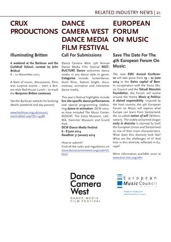 CRUX DANCE EUROPEAN PRODUCTIONS CAMERA WEST FORUM DANCE MEDIA ON MUSIC FILM FESTIVAL Illuminating Britten