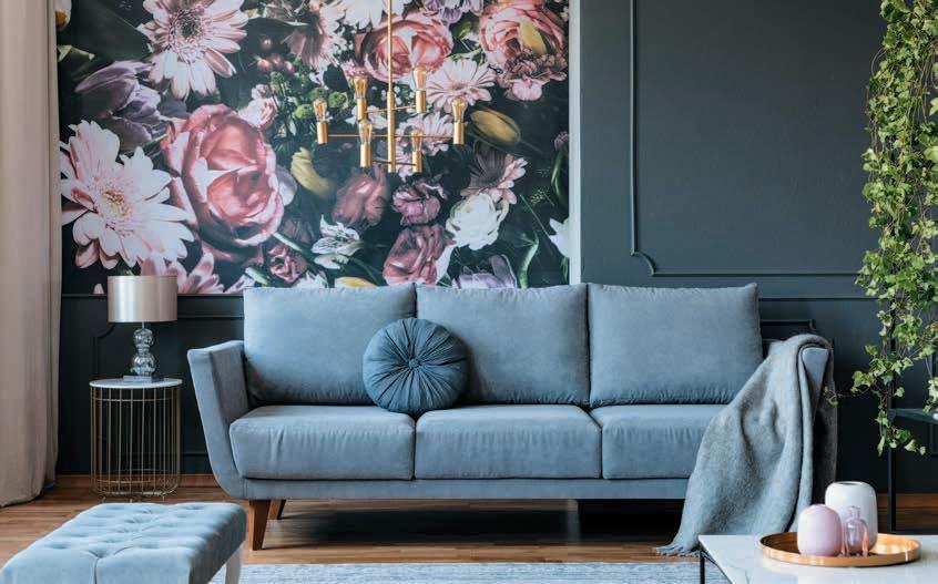 • Florale Tapeten kommen nie aus der Mode. Derzeit angesagt sind sehr opulente, dunkle Motive.