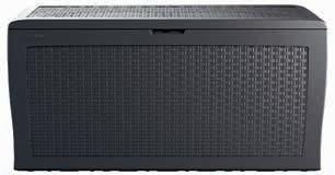 Elodie Geflecht-Optik Kunststoff anthrazit, Kissen Polyester anthrazit, Garnitur: 172 /72 x 74 x 65 cm, Beistelltisch mit Stauraumfunktion: 56 x 39 x 56 cm