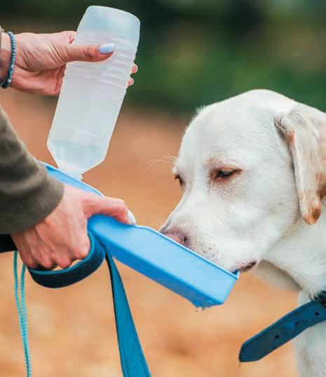 Faltbare Näpfe aus Silikon oder Nylon sparen Platz und sind leicht zu reinigen. Für unterwegs empfehlen sich auch Trinkflaschen mit integriertem Napf.