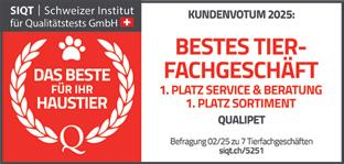 Einlösbar vom 18.8. bis 5.9.2025 in allen QUALIPET-Filialen oder online unter qualipet.ch mit dem Onlinecode: QCON10. Nicht kumulierbar. Nicht gültig für Geschenkgutscheine, Veterinärfutter und Tiere. Druckfehler vorbehalten. Ein Gutschein pro Kunde:in einlösbar.