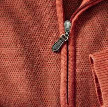 Raffiniert: Eine dezente Zweifarbigkeit und eingestrickte Kontraststreifen im Kragen runden die Optik ab.
