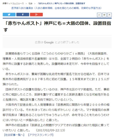 こうのとりのゆりかご in 関西