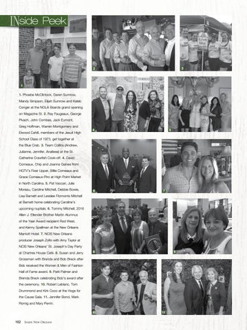 Lisa Barnett and Lesslee Fitzmorris Mitchell at Barnett home celebrating Caroline’s upcoming nuptials. 6. Tommy Mitchell, 2016 Allen J. Ellender Brother Martin Alumnus of the Year Award recipient Rod West, and Kenny Spellman at the New Orleans Marriott Hotel. 7. NCIS New Orleans producer Joseph Zolfo with Amy Taylor at NCIS New Orleans’ St. Joseph’s Day Party at Chartres House Café. 8. Susan and Jerry