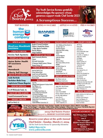 MAY-JUNE 2023 93 JUNIOR LEAGUE SHOWHOUSE Want to receive Inside Northside at home? Call (985) 626-9684 or email subscriptions@insidepub.com for more information. Want to receive Inside Northside at home?