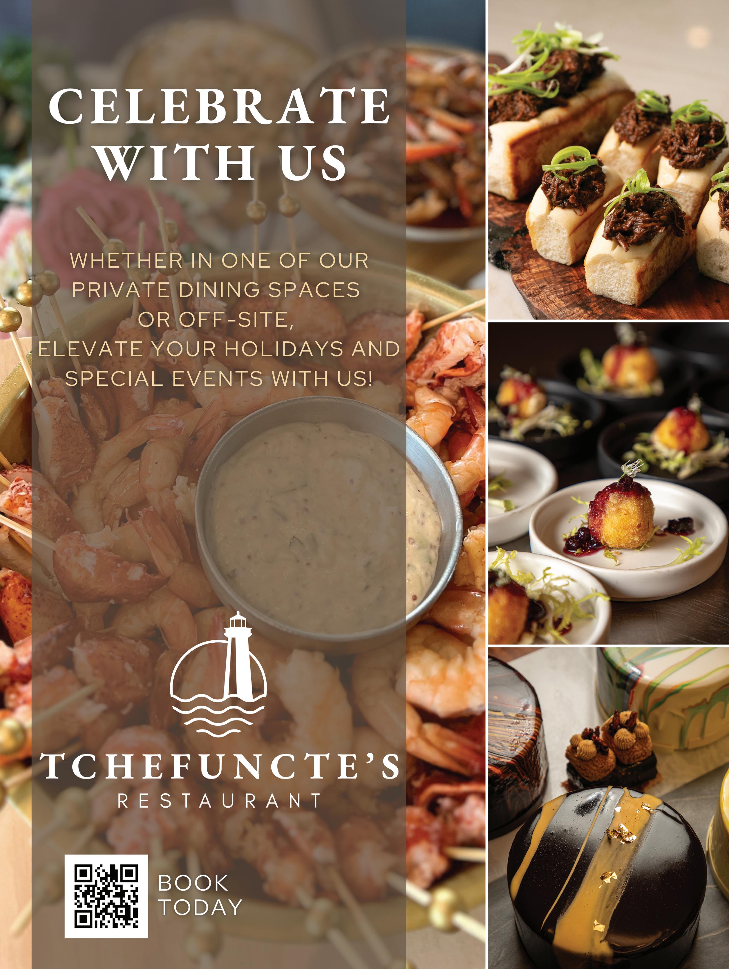 Indulge in a culinary journey at Tchefuncte’s, where our chefs masterfully craft Louisiana and American cuisine with the freshest, locally sourced ingredients. The upscale atmosphere, paired with the breathtaking scenic view of the Tchefuncte River, sets the perfect stage whether you’re in the mood for a quick bite or a long, leisurely meal, we’ve got you covered. To ensure that you have the best experience possible, we recommend making a reservation. For large parties and events, email us at EVENTS@TCHEFUNCTES.COM