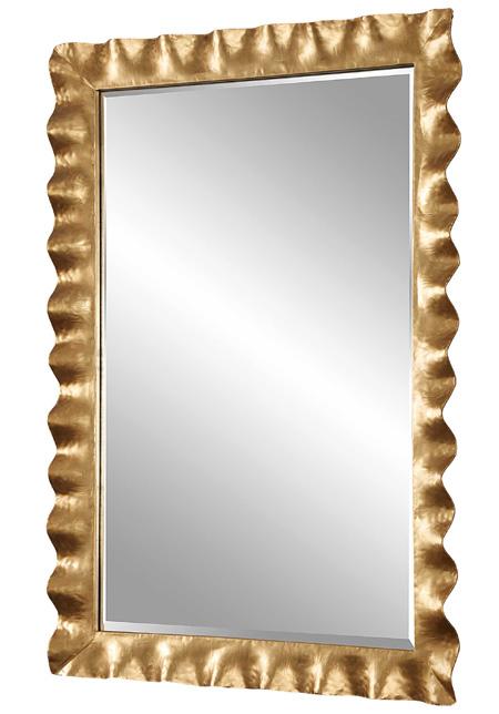 Hand forged metal frame mirror finished in a lightly antiqued gold leaf with an organic, scalloped edge design. V Home & Interiors, (985) 231-7411.