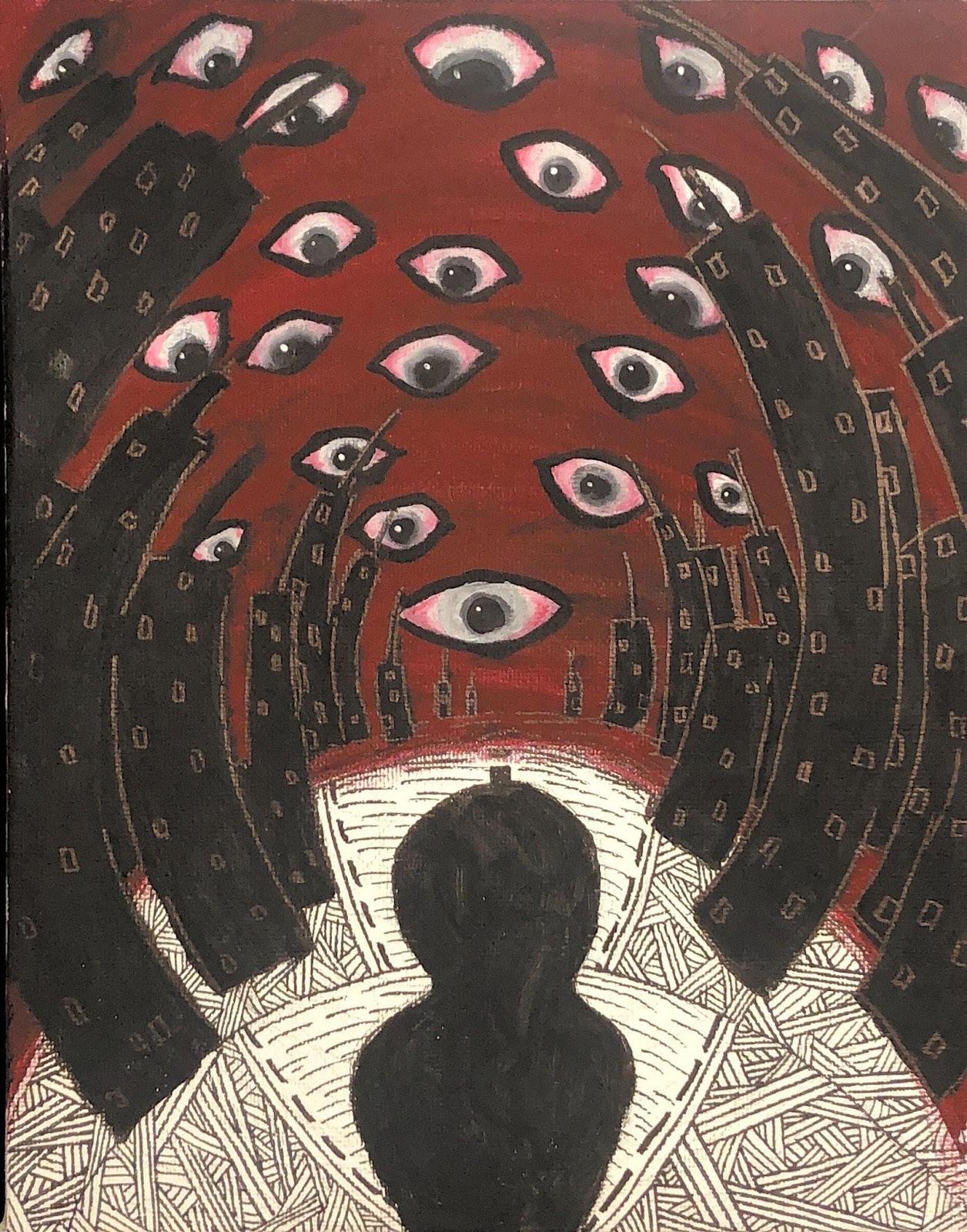 When one gazes upon the horizon, it would most often be a beautiful sight to be seen especially in the Land of the Living Skies. In this work I tried to flip the situation around; while we are gazing at the sky, admiring its beauty, the sky is staring back and it’s staring with contempt. I believe I was trying to convey a Lovecraftian feeling of existentialism without fully realizing it, trying to portray the feeling of dread and the human insignificance in comparison to the vastness of whatever’s beyond the horizon.