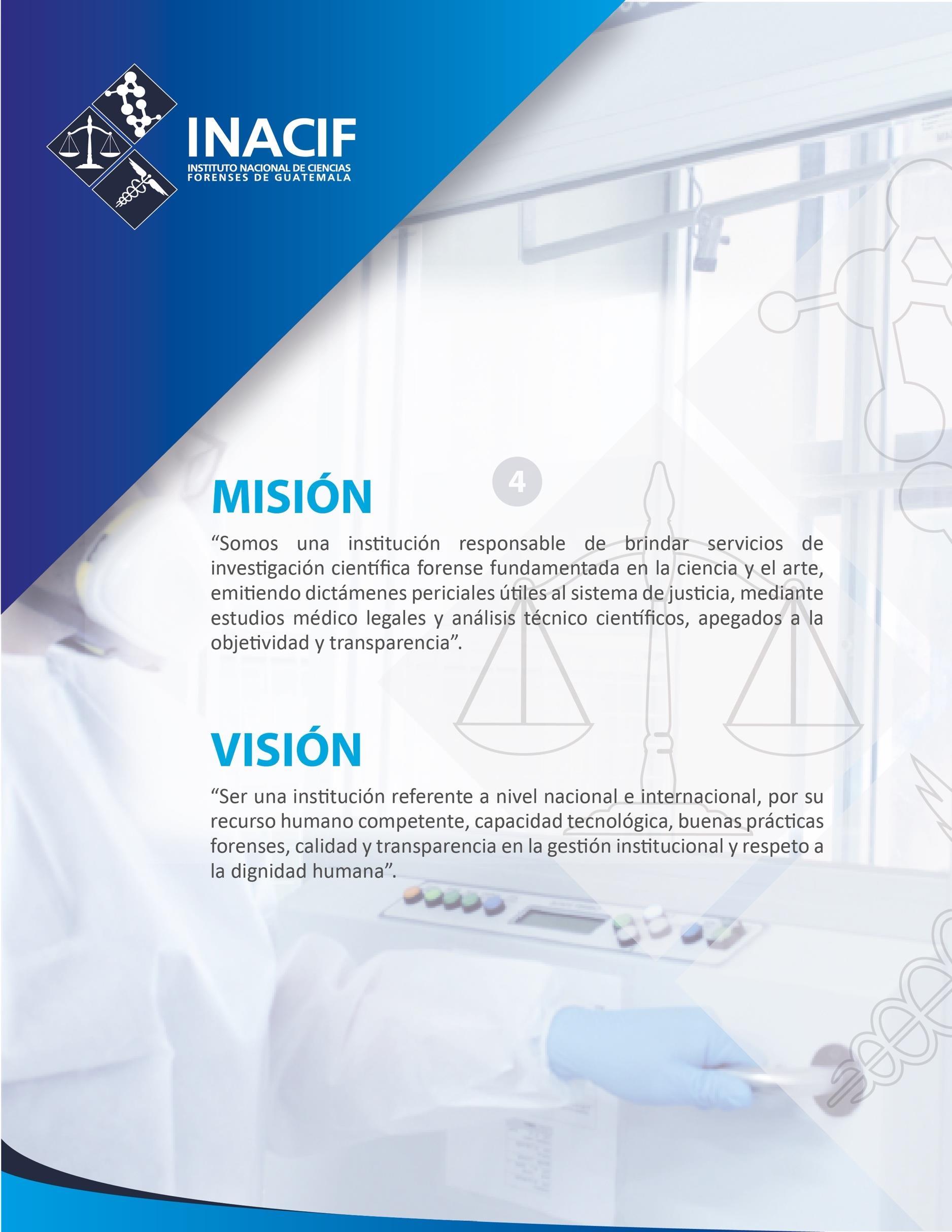 A lo largo de 2022, en su calidad de institución auxiliar de la administración de justicia, el Instituto Nacional de Ciencias Forenses de Guatemala -INACIF- ejecutó las actividades planificadas para el cumplimiento de su misión en el servicio de investigación científica de forma independiente, emitiendo dictámenes técnicos científicos con transparencia, objetividad, imparcialidad y respeto a la dignidad humana.