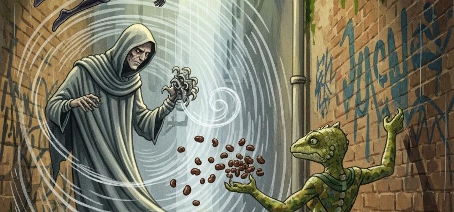 Axel lo siguió. Durante una noche de llovizna, lo vio entrar a una bodega tras el exconvento de Cuilápam. Allí lo descubrió: Víctor Hipólito no era humano. Era un Pozonqueñero, un alienígena que se alimentaba de la memoria culinaria de las civilizaciones. Su raza viajaba de planeta en planeta, borrando platillos ancestrales y debilitando la identidad de los pueblos.