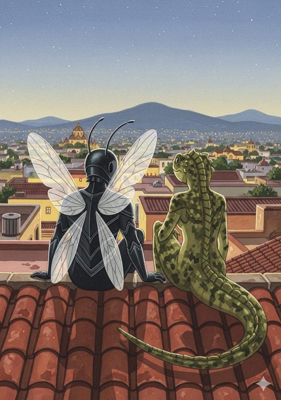 Mosquiman sintió que su mundo, que siempre había sido vertical y veloz, ahora encontraba equilibrio en la tierra templada donde Gabiguana se movía. Ella no volaba, pero sabía quedarse donde más dolía.