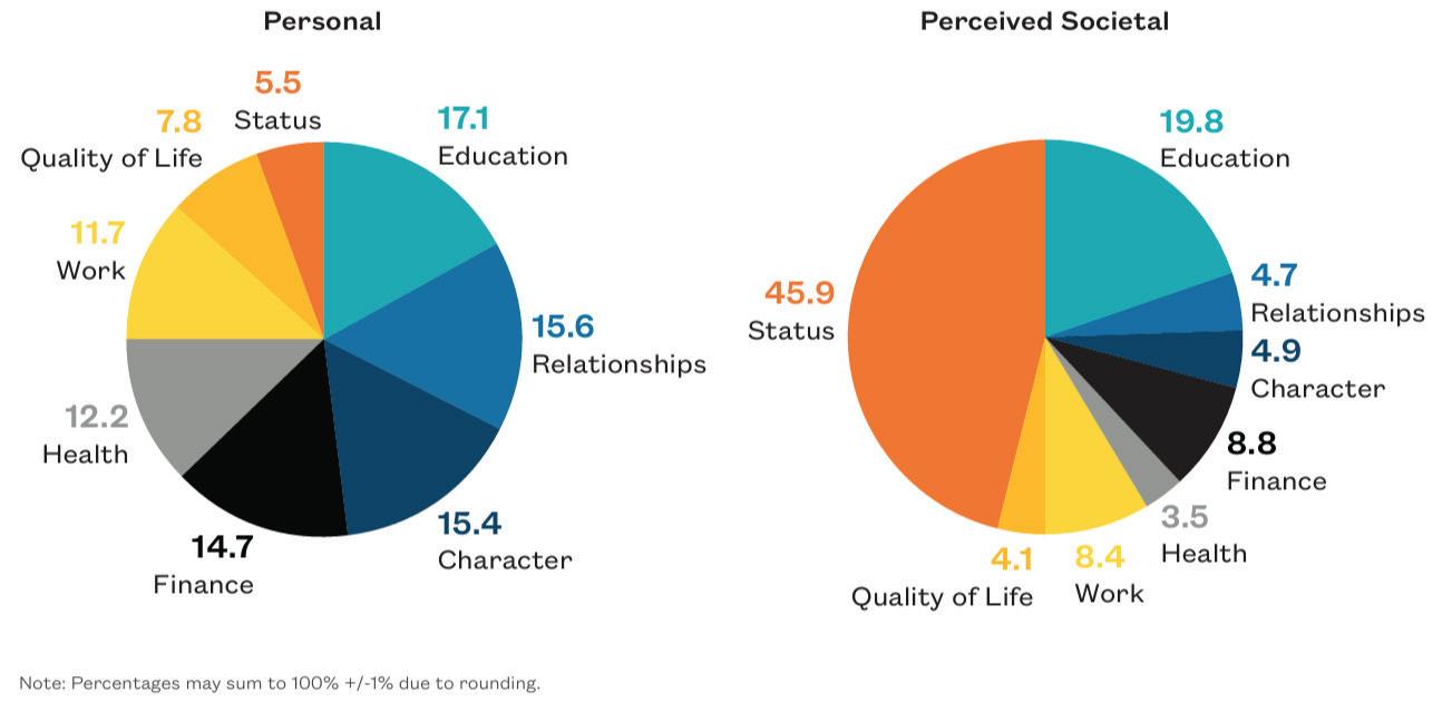 The celebration and consistent yearning for comfort in our daily lives is rooted in the cultural definition of success. What does it mean to be successful in the modern age? For many, success invokes images of wealth and struggle-free leisure devoid of any inconvenience. Legendary U.C.L.A. basketball coach John Wooden personally defined success as “peace of mind attained only through self-satisfaction in knowing you made the effort to do the best of which you are capable 1 .” Definitions of success vary and reflect personal values and priorities. Thus there exists the notion that success itself can function as an invisible personal compass that influences how we lead our lives. A study by Populace and Gallup looked into how people defined success plus its relation to well-being and found that more than 80% of Americans believe they are achieving success “according to their own view of success, rather than what they believe to be society’s view of success.” Hence, the assumption that society largely views well-being as a result of achievement and accomplishment is incomplete but not necessarily wrong 2 Most Americans view quality, interpersonal relationships as vital to their personal view of success. Meanwhile, they assume that the consensus for success in society revolves around status-oriented characteristics. The implication here – at socio-economic and policy levels – is that systems that offer the greatest variety of opportunities for individuals to achieve and fulfill their own personal view of success should be invested in moving forward.