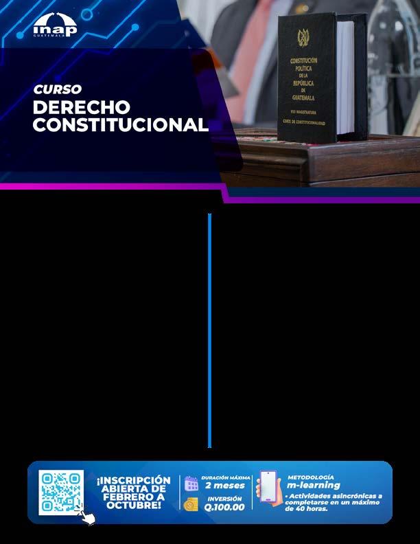 El derecho constitucional es una rama que comprende bases para aplicar normativa jurídica en distintas áreas de desempeño en el ámbito público, a través del estudio y análisis de leyes fundamentales que definen el Estado. El curso aborda una serie de generalidades en relación con formas de Estado, gobierno, derechos, principios y garantías constitucionales, con énfasis en la Constitución Política de la República de Guatemala como máxima jerarquía en el ordenamiento jurídico guatemalteco, permitiendo a los participantes conocer preceptos constitucionales que son aplicables dentro de la función pública.