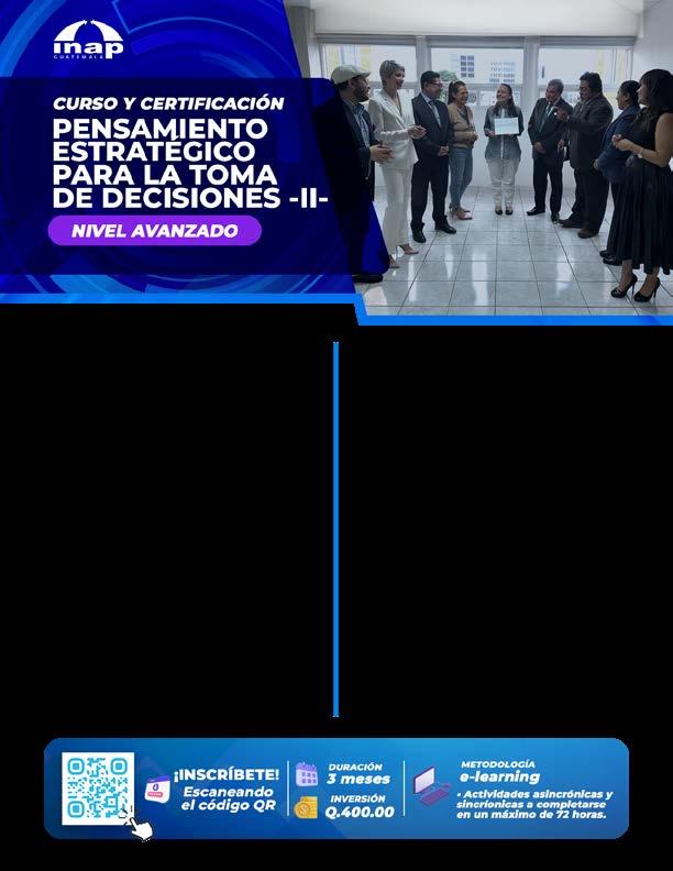 Este proceso formativo es continuación del Curso y Certificación de Pensamiento Estratégico para la Toma de Decisiones I, en esta segunda parte se pretende proseguir con el uso y análisis de distintas herramientas que les permitan a los participantes realizar ejercicios de prospectiva, creación de escenarios y análisis situacional, facilitando el proceso de toma de decisiones en su ámbito laboral.