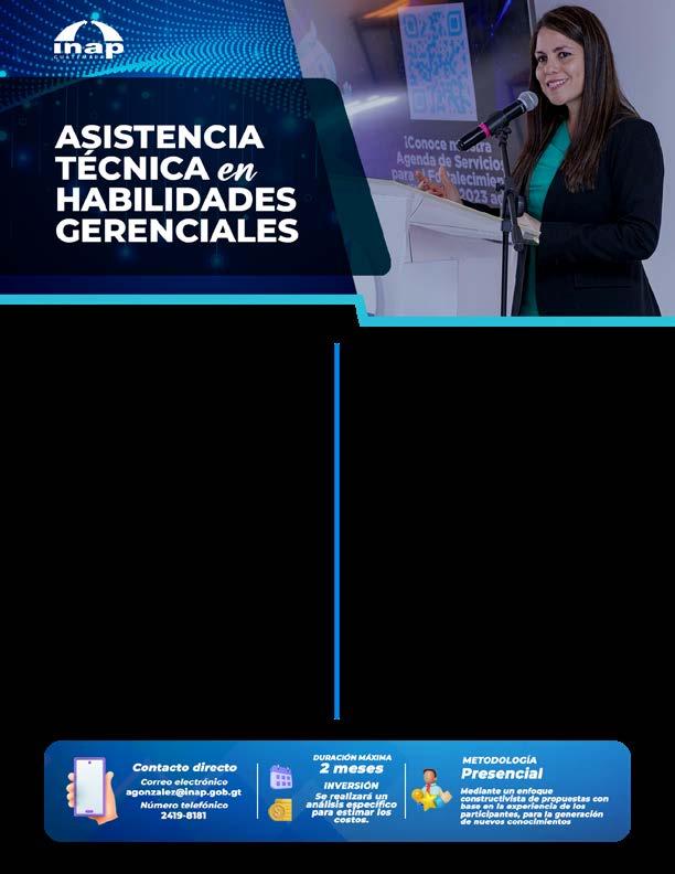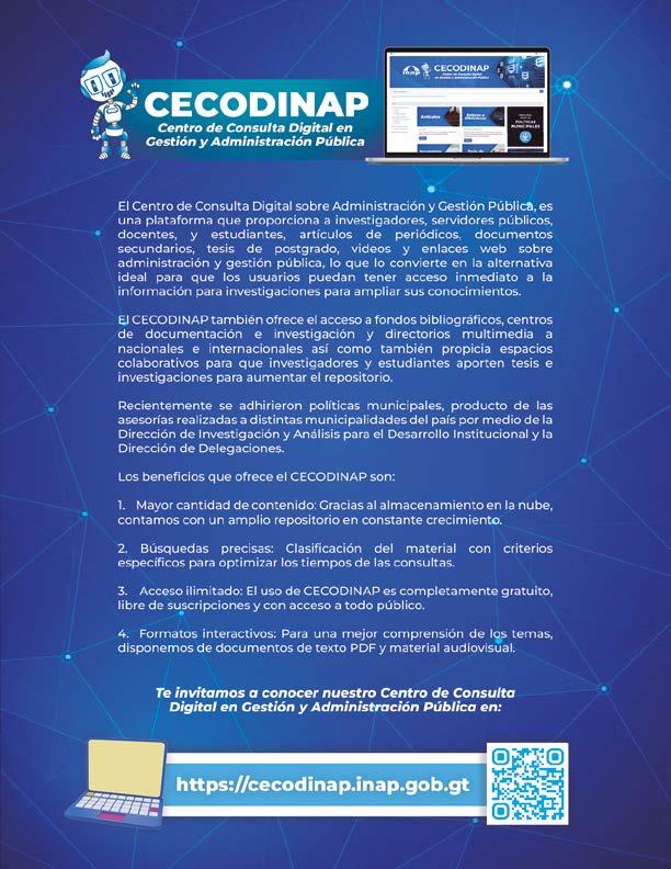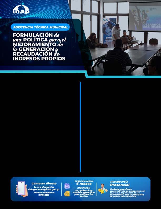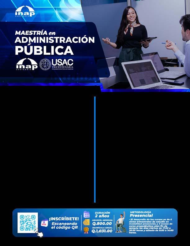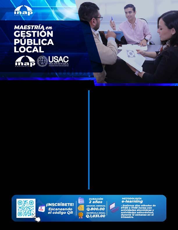 El Instituto Nacional de Administración Pública, INAP, en el marco del convenio de cooperación con la Universidad de San Carlos de Guatemala –USAC-, desarrolla el programa de Maestría en Gestión Pública Local, el cual busca incidir en el área profesional que se desempeña en el ámbito municipal y territorial a nivel nacional, permitiendo el alcance de competencias para desarrollar una gestión actualizada y eficiente, articulando los recursos técnicos, administrativos y financieros al alcance de la gestión municipal y mejorar los servicios que se brindan a la población en el territorio.