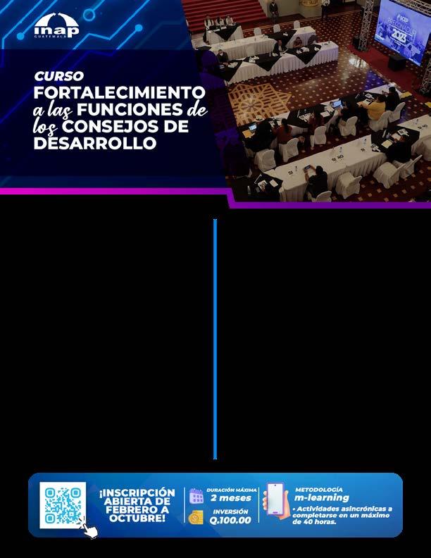 Ofrece temas que fortalecen las capacidades y competencias de los integrantes de los Consejos de Desarrollo y brinda herramientas de gestión que generan mayor viabilidad en el trabajo, integrando mecanismos que garantizan la representatividad en estas instancias de participación fortaleciendo la organización efectiva, así como la descentralización de la administración pública e incorpora elementos de legitimidad ciudadana en las decisiones de inversión.