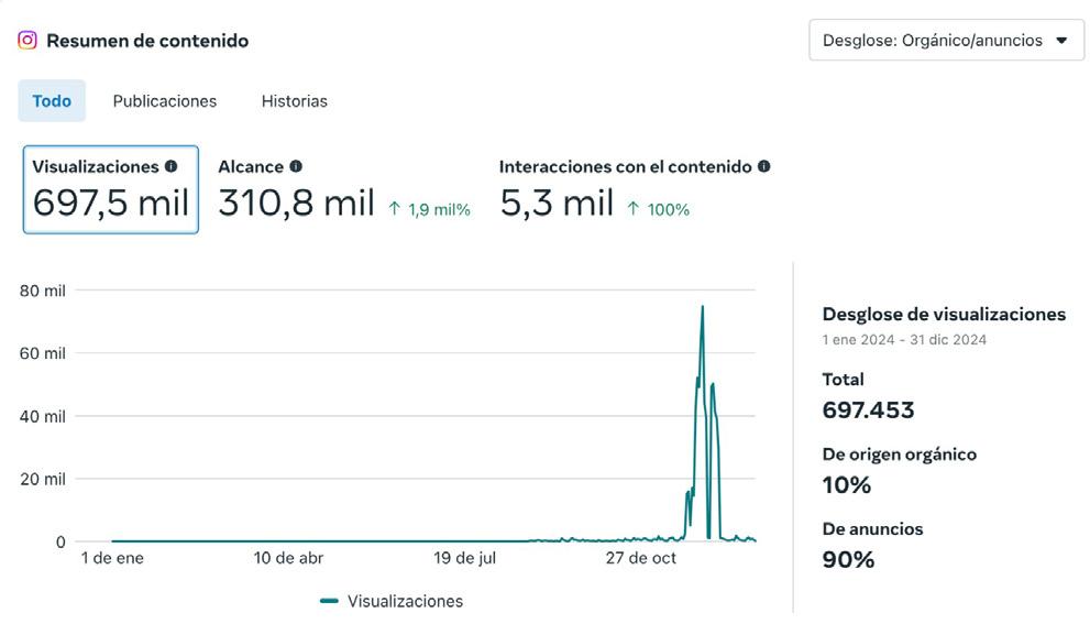Evolución del alcance de Facebook e Instagram en el período 01 enero a 31 de diciembre de 2024