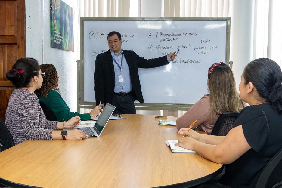 Siendo este marco filosófico su guía, durante el año 2024 enfocó parte de su trabajo en promover a la institución en las diferentes instancias del Organismo Ejecutivo tanto en la ciudad capital como en los departamentos, con el fin de dar a conocer la importancia del INAP para el desarrollo del recurso humano, así como de la coordinación de las acciones de desarrollo administrativo del sector público.