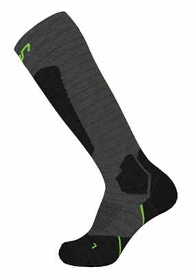 Packed with merino wool for exceptional warmth and comfort, our socks will keep your feet feeling happy all day long on the slopes. Muscle Support/ Light Compression Elastic all over knitting for superb foothold during highest intensity activity.