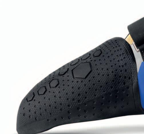 Nově navržená pata s mikrotexturou pro zvýšení tření a lepší přenos síly v náročných úhlech.
