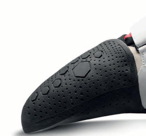 Vyšší přilnavost a odolnost obsázky (obvodové gumy) je důkazem našeho závazku k výkonu a neustálému vylepšování naší řady lezeček. Při vývoji nové obsázky byla zároveň prioritou i její vyšší pružnost. Díky tomu, že nová směs Science Friction R2 nabízí větší elasticitu bez ztráty výkonu, působí naše nové modely mimořádně pohodlně a citlivě – poskytují přesný a velmi padnoucí střih.