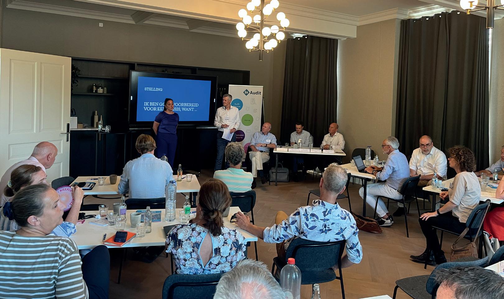 De laatste spreker was Mirthe Zantvoord (Exeas). Zij heeft na een carrière binnen de politie de overstap gemaakt naar advisering in het veiligheidsdomein. Ze gaf de aanwezigen handvatten om in crisissituaties te kunnen handelen. Het is van belang om dit ook te oefenen, want ‘voorbereiden in vredestijd geeft rust in oorlogstijd’. Een crisissituatie betekent vaak werken onder hoge tijdsdruk, grote onzekerheid en vaak onvolledige en tegenstrijdige informatie. Om dit het hoofd te bieden is het goed om een crisisorganisatie voor te bereiden, met een vaste rolverdeling en overlegstructuur volgens het P-BOB model.