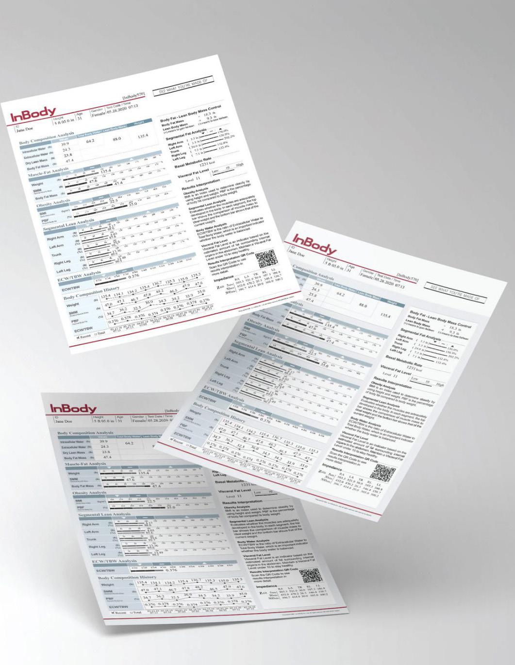 The InBody 970 can generate 6 different result sheets: