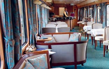 ren naar muziek van de meereizende pianist. Dit is ook de plaats waar, op bepaalde tijden, door een expert lezingen over historie en cultuur langs de reisroute worden gegeven. Verder kunt u gebruikmaken van de laundry service en de diensten van een meereizende arts. De voertaal aan boord is Engels.