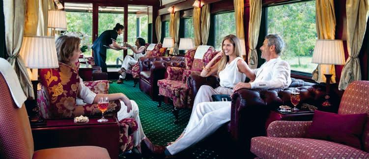 Het salonrijtuig biedt een gezellige plek voor een kop koffie of cocktail en helemaal achter in de trein bevindt zich het observatierijtuig, een salon/bar met grote panoramische ramen en gemakkelijke fauteuils en banken. Op het open achterbalkon kunt u de indrukwekkende Afrikaanse landschappen in alle glorie voorbij zien glijden. U reist in internationaal gezelschap en de voertaal is Engels.