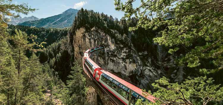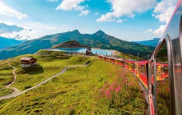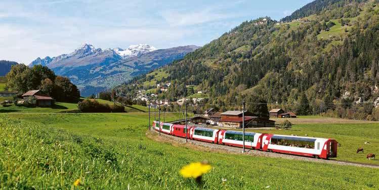 Natuurlijk is er de beroemde en legendarische Glacier Express, die u meeneemt door het steeds wisselende berglandschap tussen St. Moritz en Zermatt. De trein baant zich een weg door het spectaculaire dal van de jonge Rijn en het Rhônedal bij Brig. Het hoogste punt bevindt zich op de Oberalppas (2.033 meter).