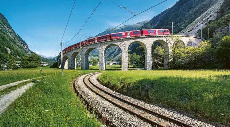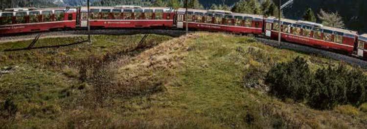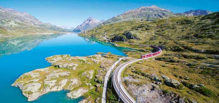 Ook de Bernina Express neemt u mee langs ruige berggebieden en uitgestrekte landschappen, maar dan op het traject tussen Chur en Tirano (Italië).