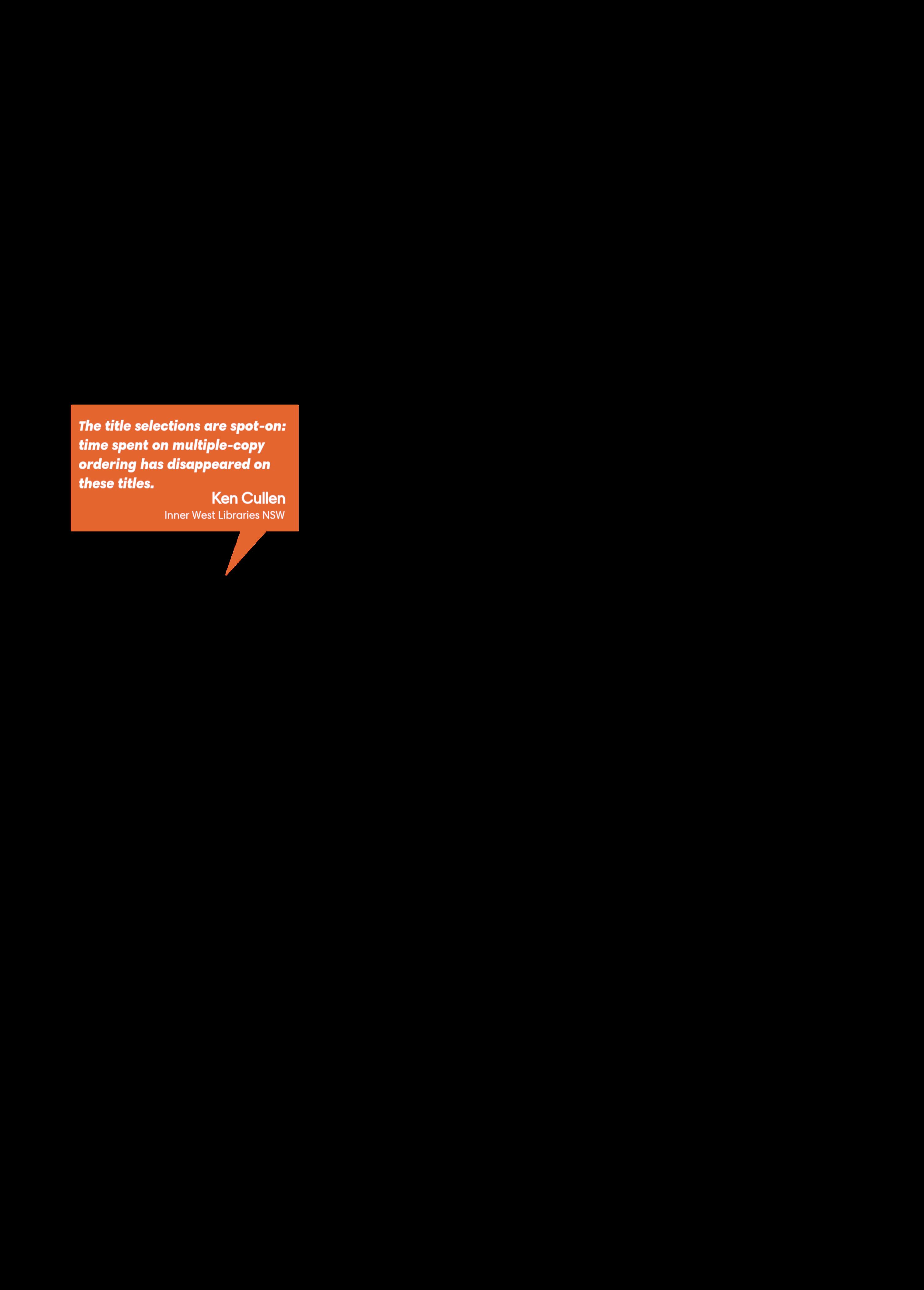 • Include Australian authors in your acquisition standing orders. Not only are you supporting them by purchasing their books early, but the sooner the books are added to your collection, the better chance their authors have of getting a higher score that contributes to their annual payment.