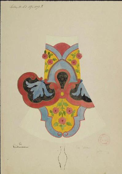 seen at the 1880 Exhibition in Melbourne, where Victoria received a specially produced vase from the Sèvres factory, painted with the City of Melbourne coat of arms, flags and motto vires acquirit eundo — ‘We gather strength as we go’ (City of Melbourne, 2017). In 1888, France had again selected a Sèvres vase to give to its host nation: an egg-shaped vase, factory number 214.109, of the second-largest size, pink ground decorated in blue enamel and highlighted in gold by Guillemain (Buisson, 1888; Executive Commissioners for the ICEM, 1888–1889, 1890, p. 138). After being exhibited in the Melbourne Exhibition Buildings, in an ‘idolised place of honour in the centre of a large gallery’ (Buisson, 1888), the Sèvres vase entered the public record in 1889 as the property of the Education Department (Public Library, Museums, and National Gallery Victoria, 1889).