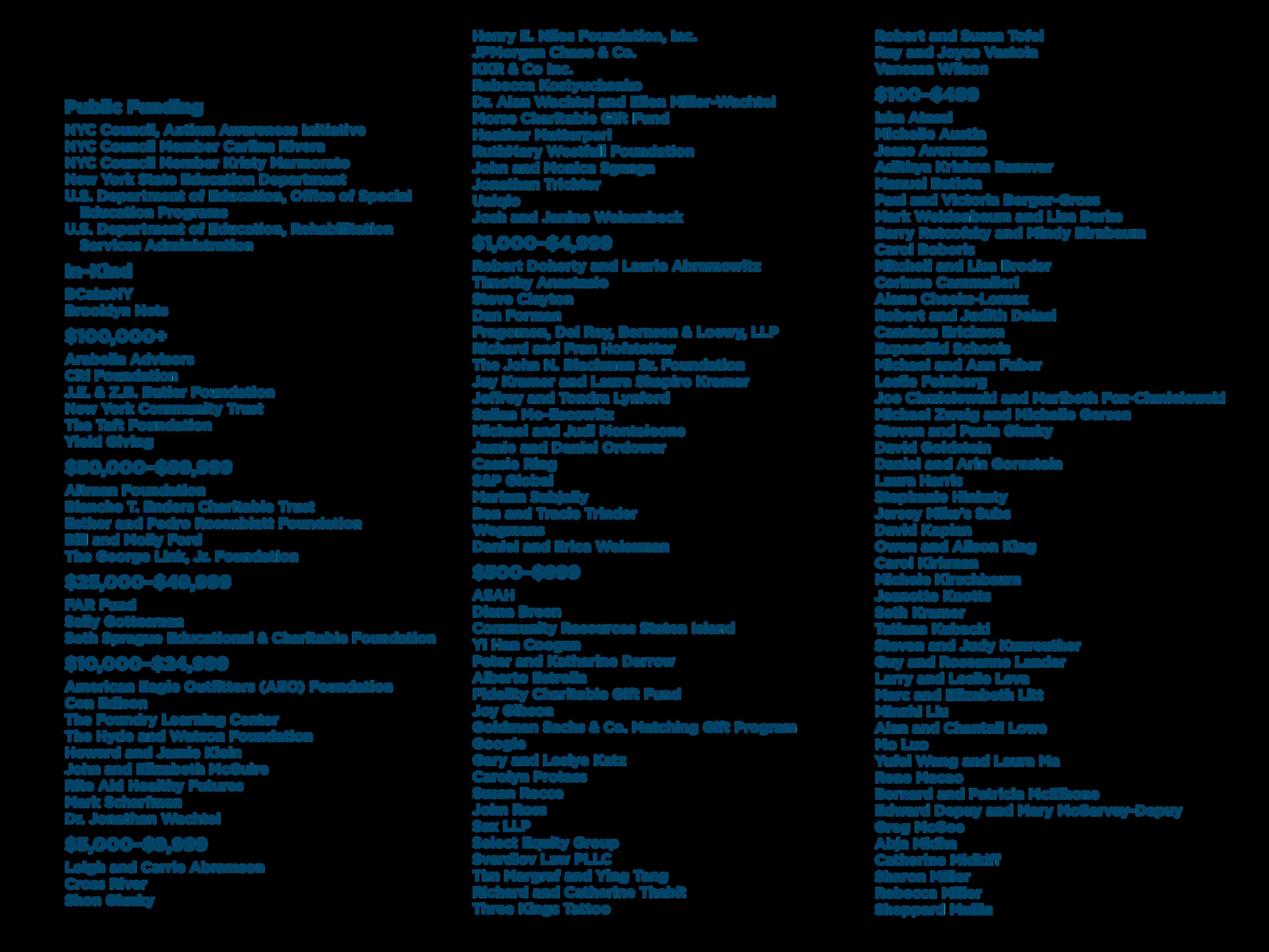 For us, success is more than our statistics. We are focused on the lasting impacts, and there were many in 2024. We celebrated countless hours of listening, sharing resources, fostering relationships, supporting independence, encouraging greatness, and helping people find their voices. Our success is measured in the hundreds of youths that learn how to invest in their futures, the thousands of families who found community through the INCLUDEnyc Parent Support Groups and workshops, the hundreds of professional organizations who are investing in supporting youths with disabilities, and our young adults who come back to encourage others who come after them.