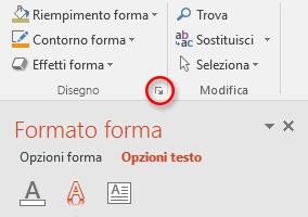 È possibile formattare con precisione un'immagine, una forma o un oggetto usando gli strumenti completi disponibili nel riquadro attività Formato forma. Per visualizzarlo, fare clic sulla scheda Home e quindi sulla piccola freccia nell'angolo in basso a destra del gruppo Disegno della barra multifunzione.